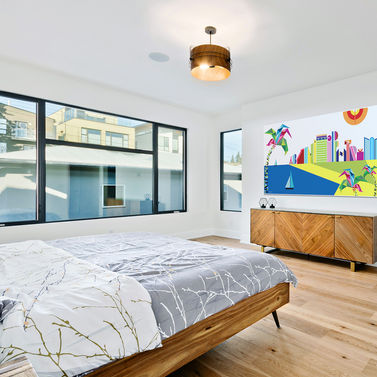 Inspired by the abstract, geometric principles, and use of primary colors in Piet Mondrian's artwork, Urban Typography started as commissioned artwork for clients, who were looking for something bright and bold for their new home. They wanted something to bring in pops of colour into their living space, to offset their gray couch and light gray flooring. As jetsetters, they loved the idea of incorporating some of their favorite cities in the artwork. And thus, Urban Typography was born.